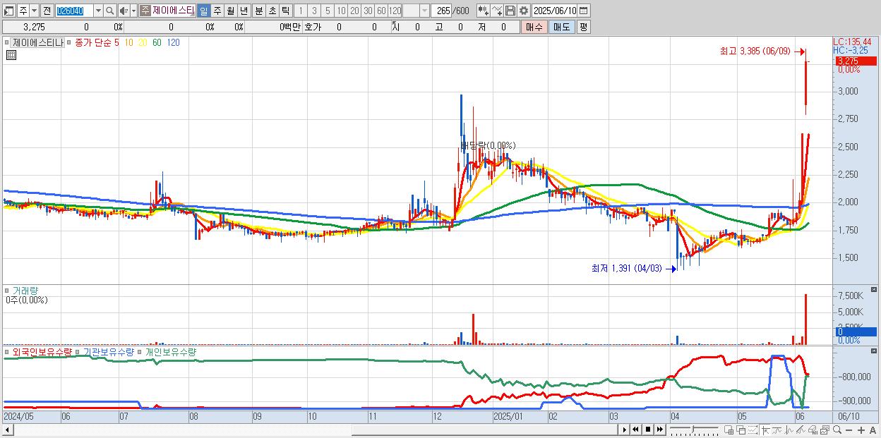 - 제이에스티나 (3,275원 ▲ 24.76% , 시총: 540억, 거래량: 7,847,638, 거래대금:243억, KOSDAQ)
