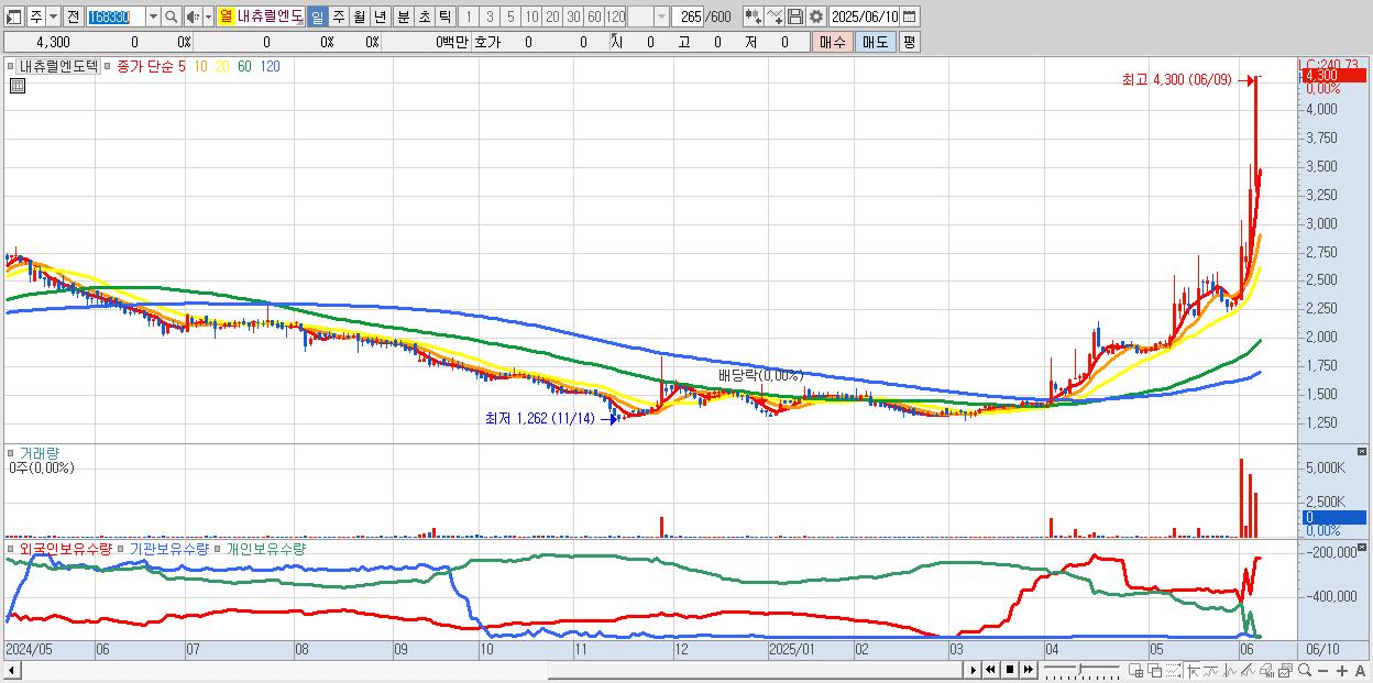 - 내츄럴엔도텍 (4,300원 ▲ 29.91% , 시총: 1,365억, 거래량: 3,186,778, 거래대금:128억, KOSDAQ)
