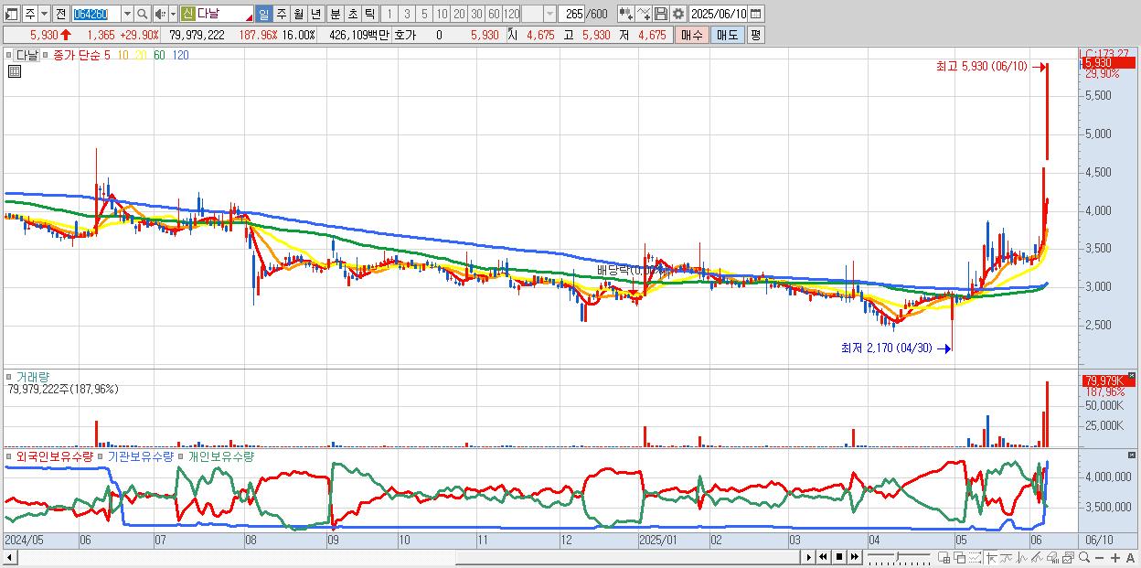 다날 5,930원 ▲ 29.9% (KOSDAQ, 064260)