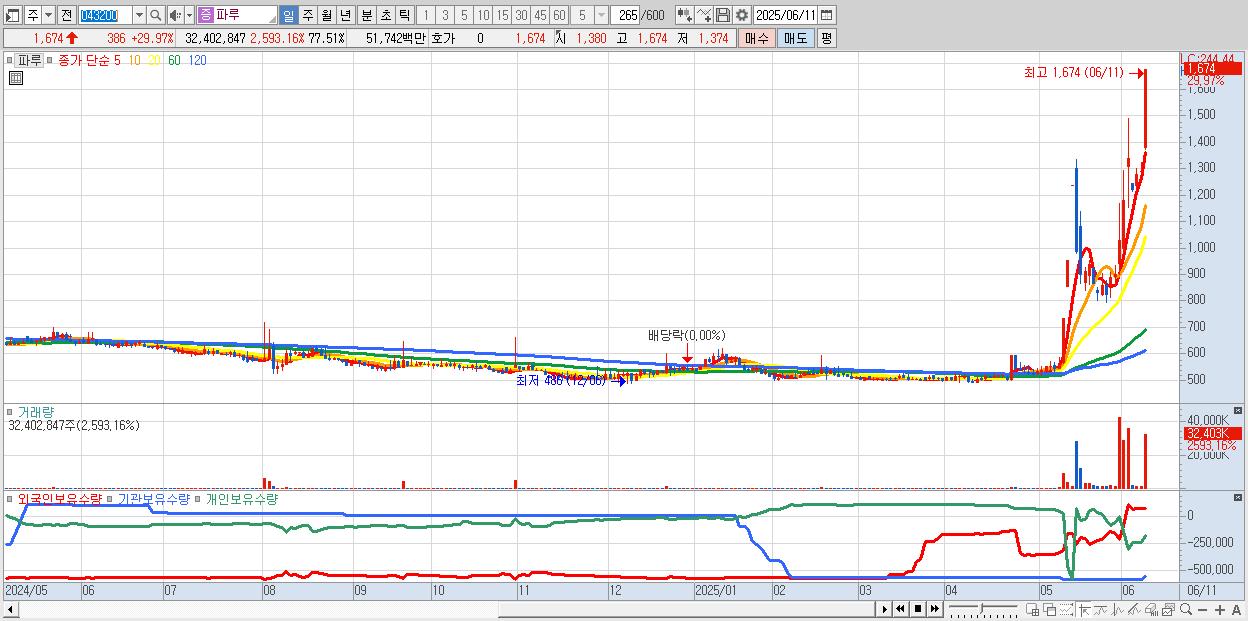 파루 1,674원 ▲ 29.97% (KOSDAQ, 043200)