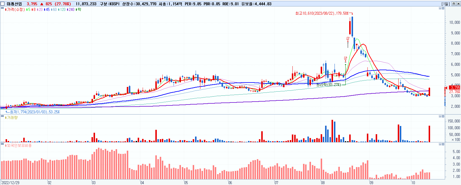 5.미래산업 3,795원 ▲ 27.78% (KOSPI, 025560)