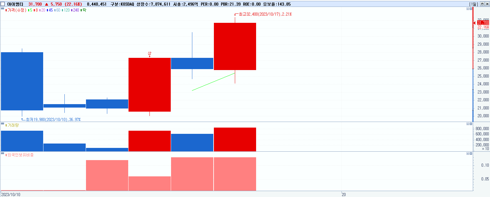 - 아이엠티 (31,700원 ▲ 22.16% , 시총: 2,496억, 거래량: 8,458,352, 거래대금:2,497억)