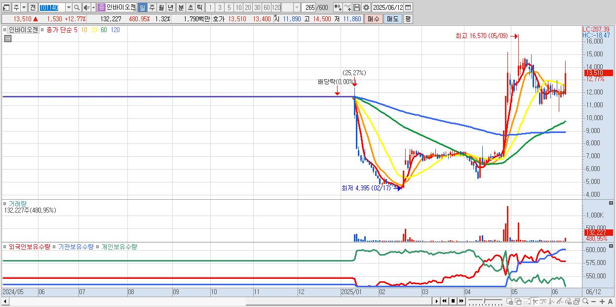 - 인바이오젠 (13,510원 ▲ 12.77% , 시총: 1,357억, 거래량: 132,227, 거래대금:18억)