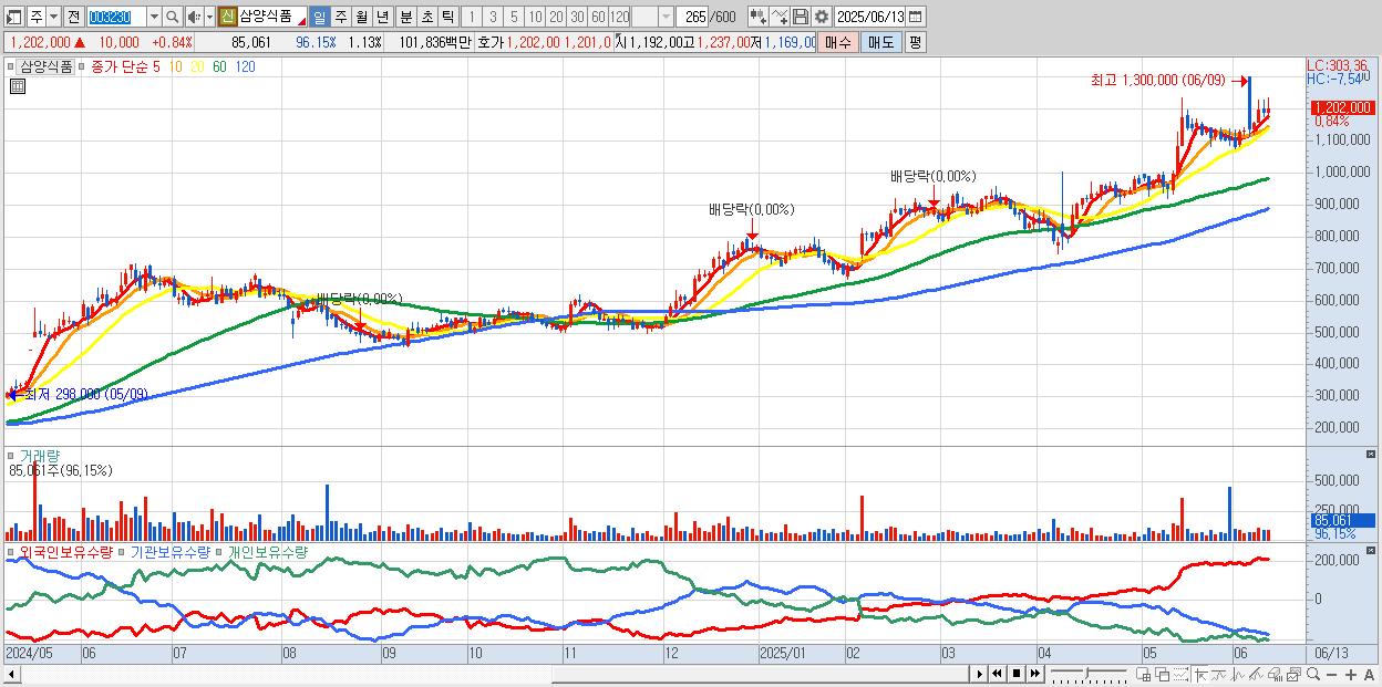 - 삼양식품 (1,196,000원 ▲ 0.34% , 시총: 90,095억, 외국인 순매수 거래금:124억)
