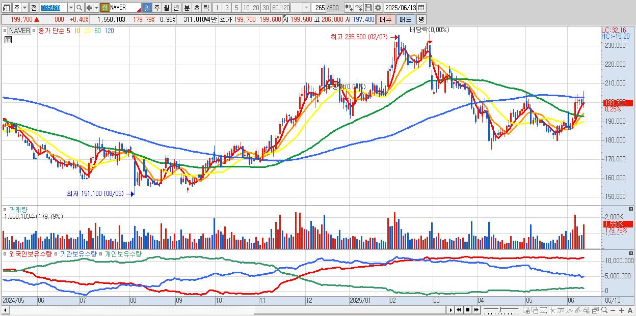- NAVER (200,500원 ▲ 0.8% , 시총: 317,666억, 외국인 순매수 거래금:187억)