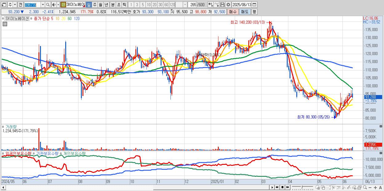 - SK이노베이션 (92,600원 ▼ -3.04% , 시총: 139,858억, 외국인 순매수 거래금:201억)