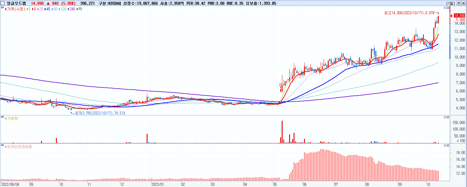 잉글우드랩 14,890원 ▲ 5.98% (KOSDAQ, 950140)