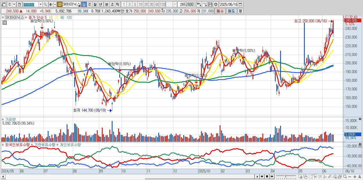SK하이닉스 5% 급등 역대 최고가 마감…'25만닉스' 눈앞에