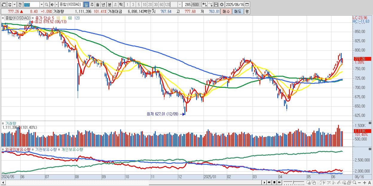 | 06/16 | 777.26 | ▲1.09% | -1,515억 | 1,176억 | 437억 | -99억 |