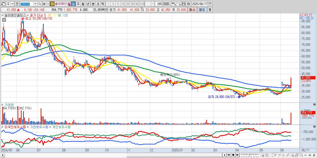 - 솔브레인홀딩스 (39,050원 ▲ 16.39% , 시총: 8,186억, 거래량: 335,415, 거래대금:129억)