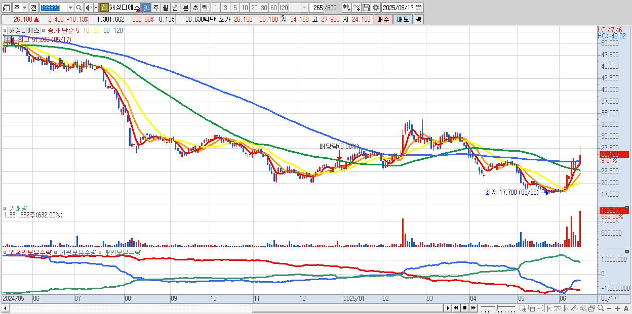 - 해성디에스 (26,350원 ▲ 11.18% , 시총: 4,480억, 거래량: 935,501, 거래대금:248억)