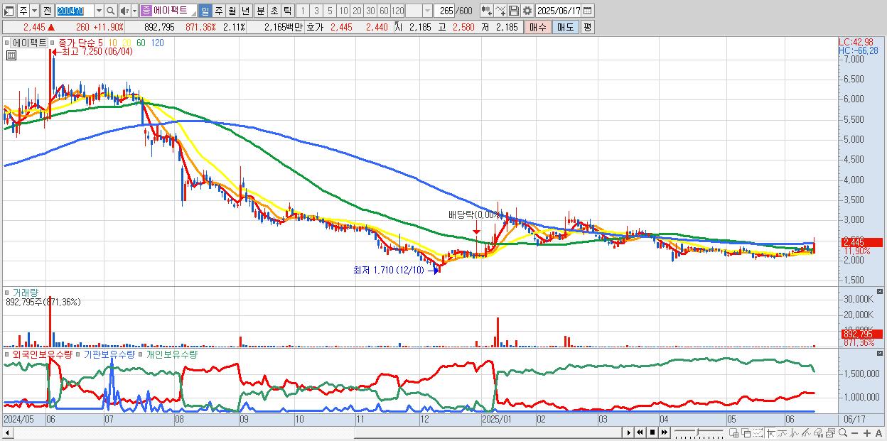 - 에이팩트 (2,445원 ▲ 11.9% , 시총: 1,036억, 거래량: 892,795, 거래대금:22억)