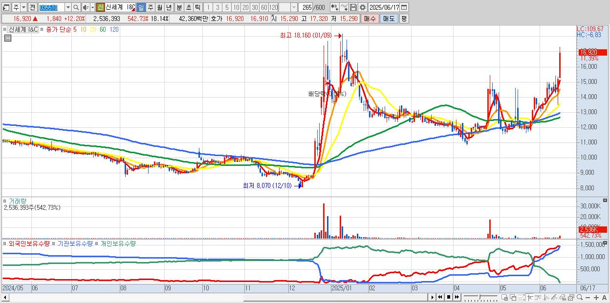 - 신세계 I&C (17,210원 ▲ 14.12% , 시총: 2,406억, 거래량: 1,502,222, 거래대금:251억)