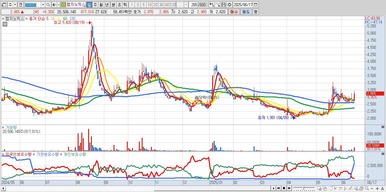 - 랩지노믹스 (2,865원 ▲ 9.35% , 시총: 2,127억, 거래량: 20,506,140, 거래대금:585억)