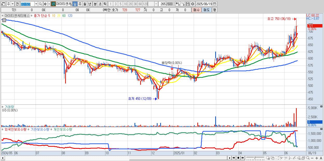 - 아이티센씨티에스 (721원 ▲ 5.26% , 시총: 873억, 거래량: 4,986,394, 거래대금:36억, KOSPI)