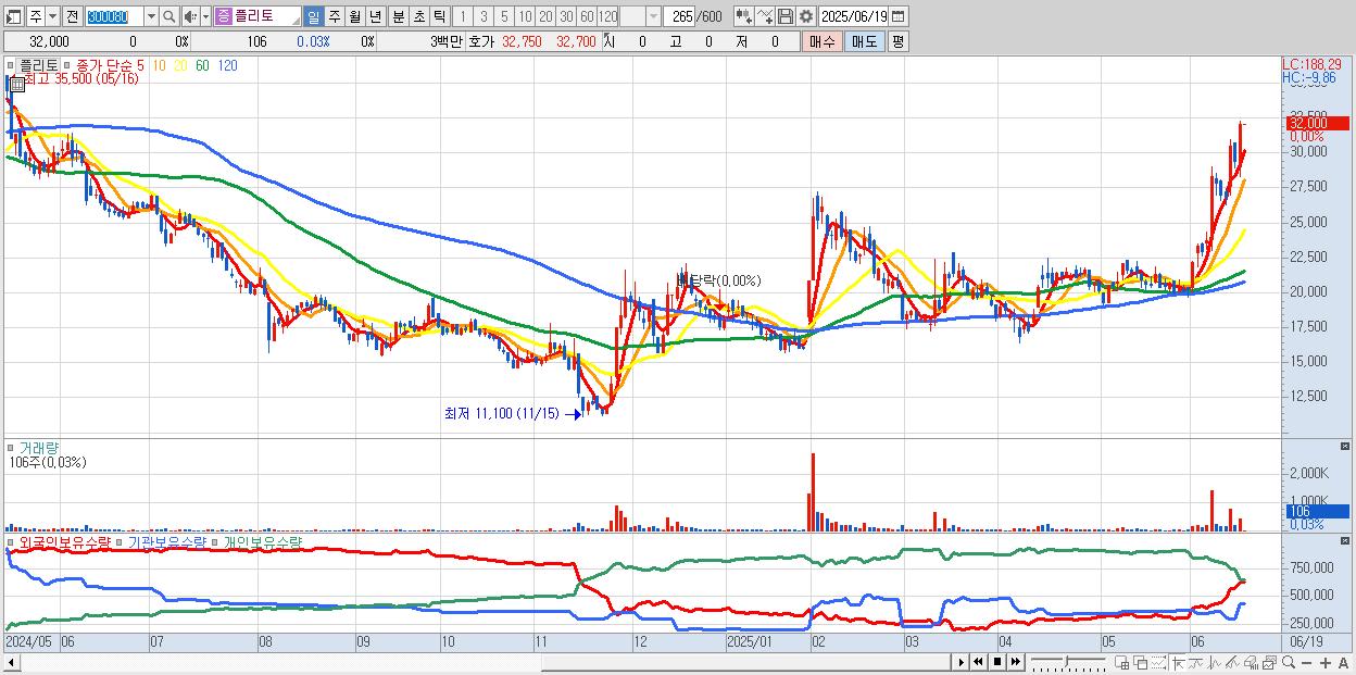 - 플리토 (32,000원 ▲ 8.84% , 시총: 1,761억, 거래량: 423,495, 거래대금:132억, KOSDAQ)