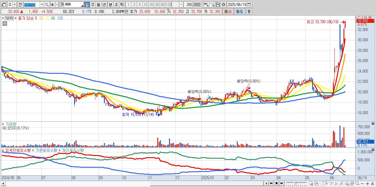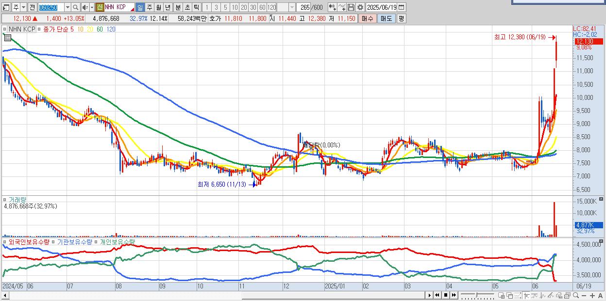 - NHN (32,200원 ▲ 10.46% , 시총: 10,873억, 거래량: 507,304, 거래대금:158억, KOSPI)