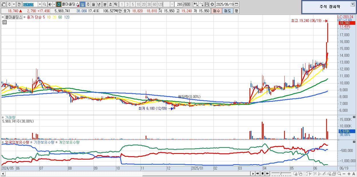 콜마홀딩스 15,950원 ▲ 29.99% (KOSPI, 024720)