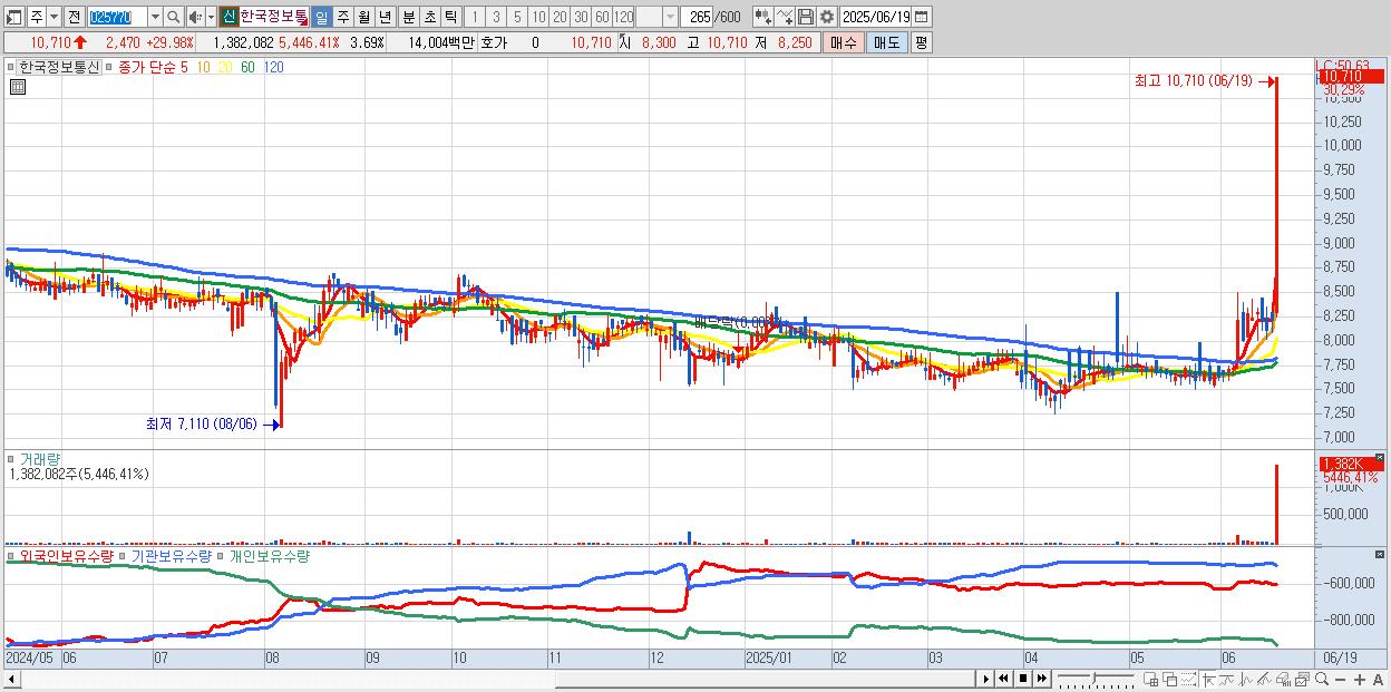 한국정보통신 10,710원 ▲ 29.98% (KOSDAQ, 025770)