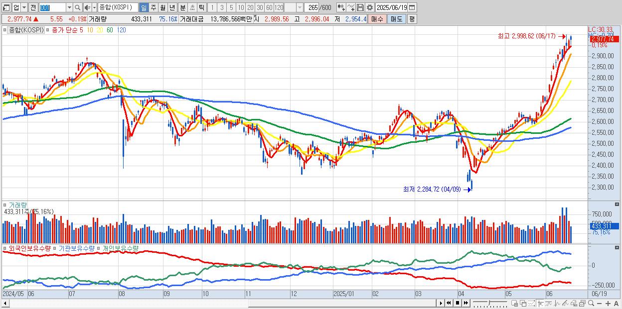06/19 | 2,977.74 | ▲0.19% | 3,500억 | -826억 | -3,018억 | 344억 |