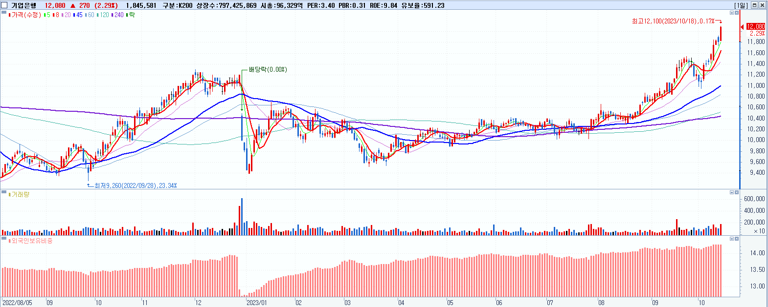 기업은행 12,080원 ▲ 2.29% (KOSPI, 024110)