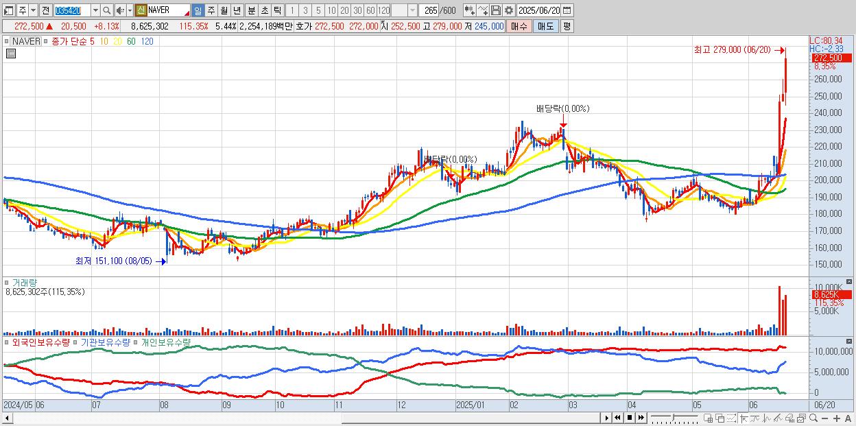 1.NAVER 269,500원 ▲ 6.94% (KOSPI, 035420)