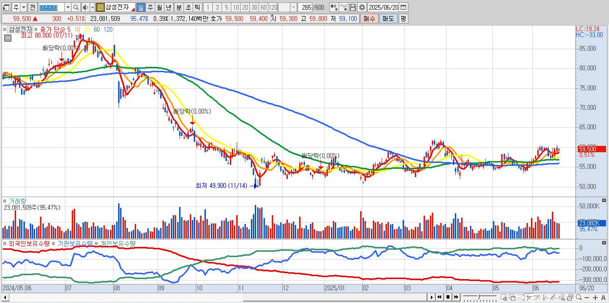 2.삼성전자 59,500원 ▲ 0.51% (KOSPI, 005930)
