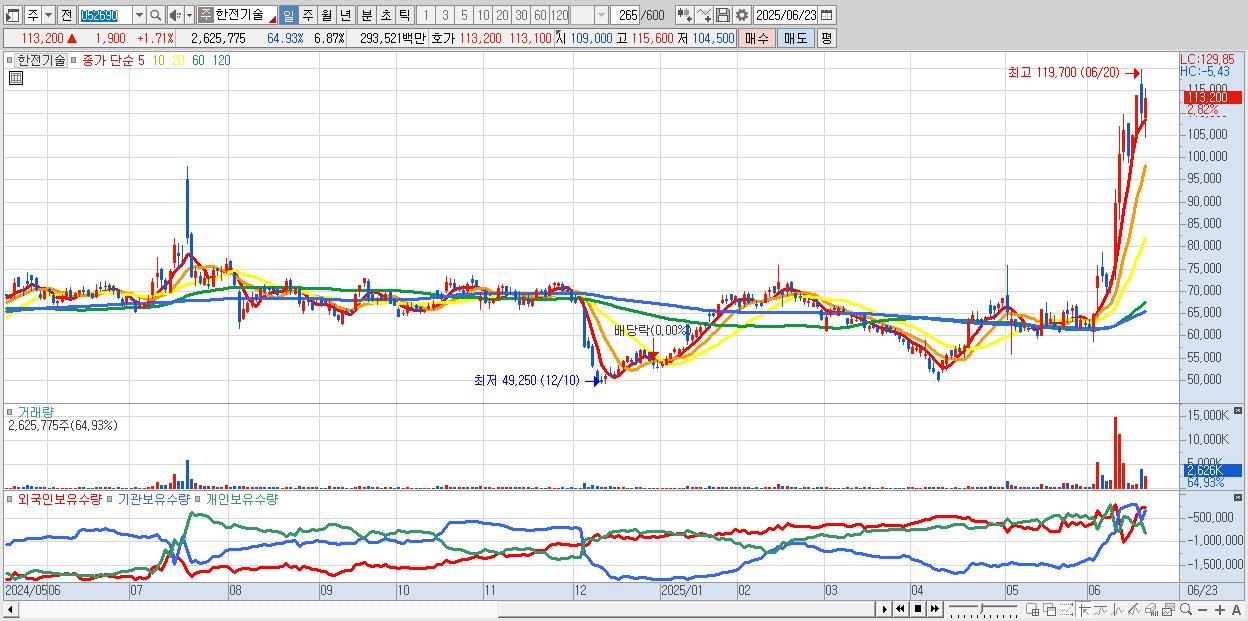 - 한전기술 (111,700원 ▲ 0.36% , 시총: 42,692억, 거래량: 1,497,987, 거래대금:1,679억)