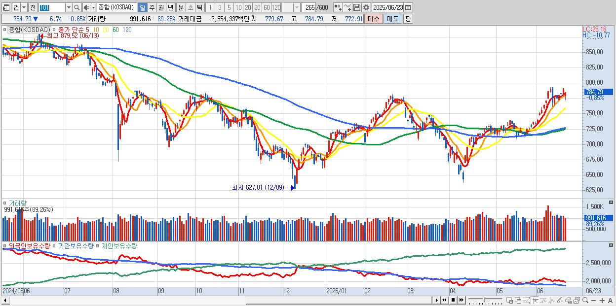 | 06/20 | 791.53 | ▲1.15% | -849억 | 499억 | 388억 | -39억 |