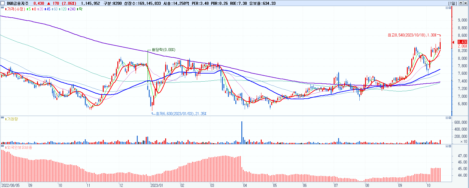 DGB금융지주 8,430원 ▲ 2.06% (KOSPI, 139130)
