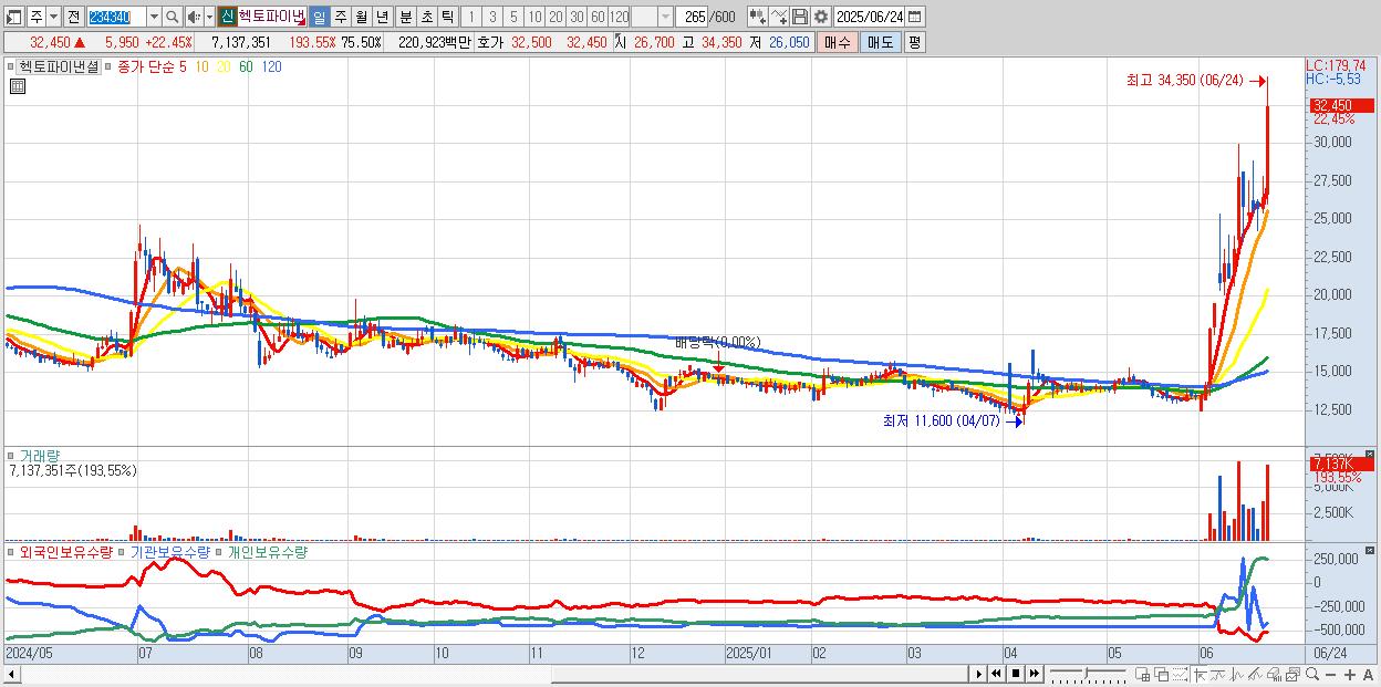 - 헥토파이낸셜 (32,400원 ▲ 22.26% , 시총: 3,063억, 거래량: 3,264,291, 거래대금:1,008억, KOSDAQ)