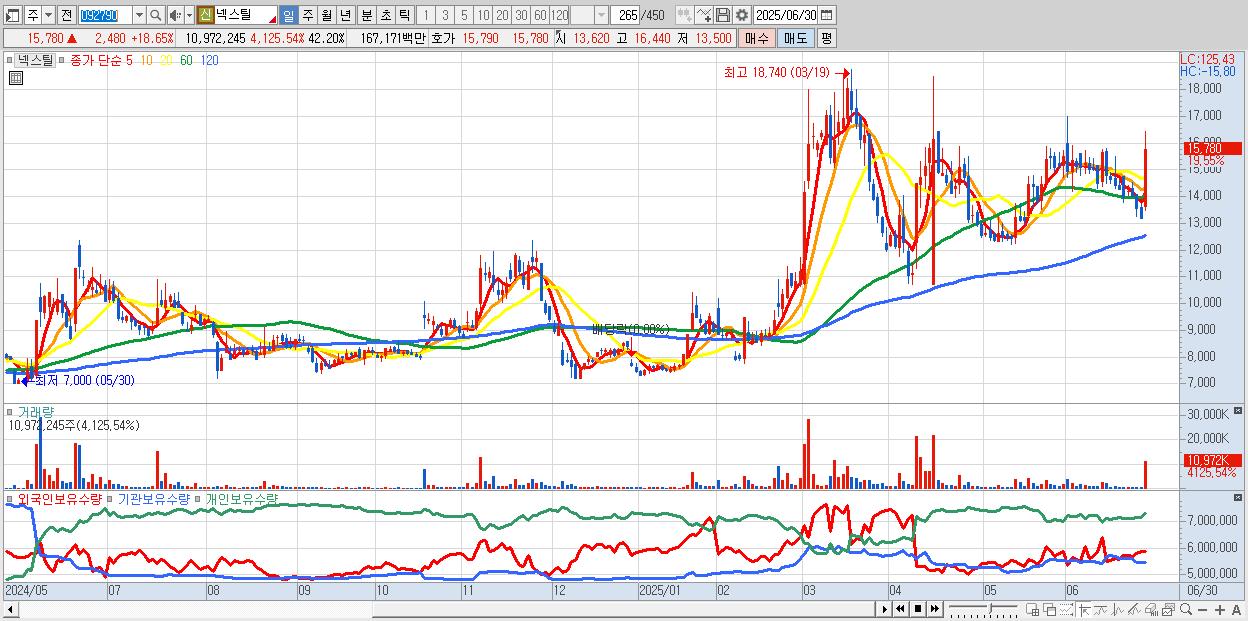 - 넥스틸 (15,720원 ▲ 18.2% , 시총: 4,088억, 거래량: 3,960,932, 거래대금:589억)