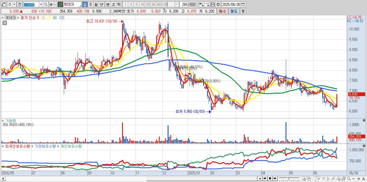 30.제테마 6,830원 ▲ 10.16% (KOSDAQ, 216080)