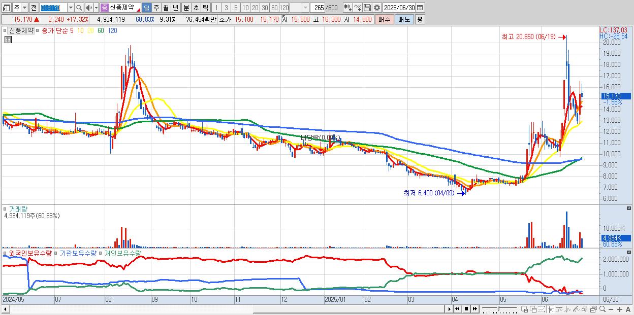 - 신풍제약 (15,330원 ▲ 18.56% , 시총: 8,123억, 거래량: 2,038,544, 거래대금:314억)