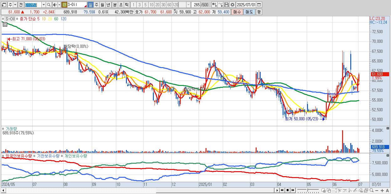 - S-Oil (61,800원 ▲ 3.17% , 시총: 69,576억, 외국인 순매수 거래금:112억)