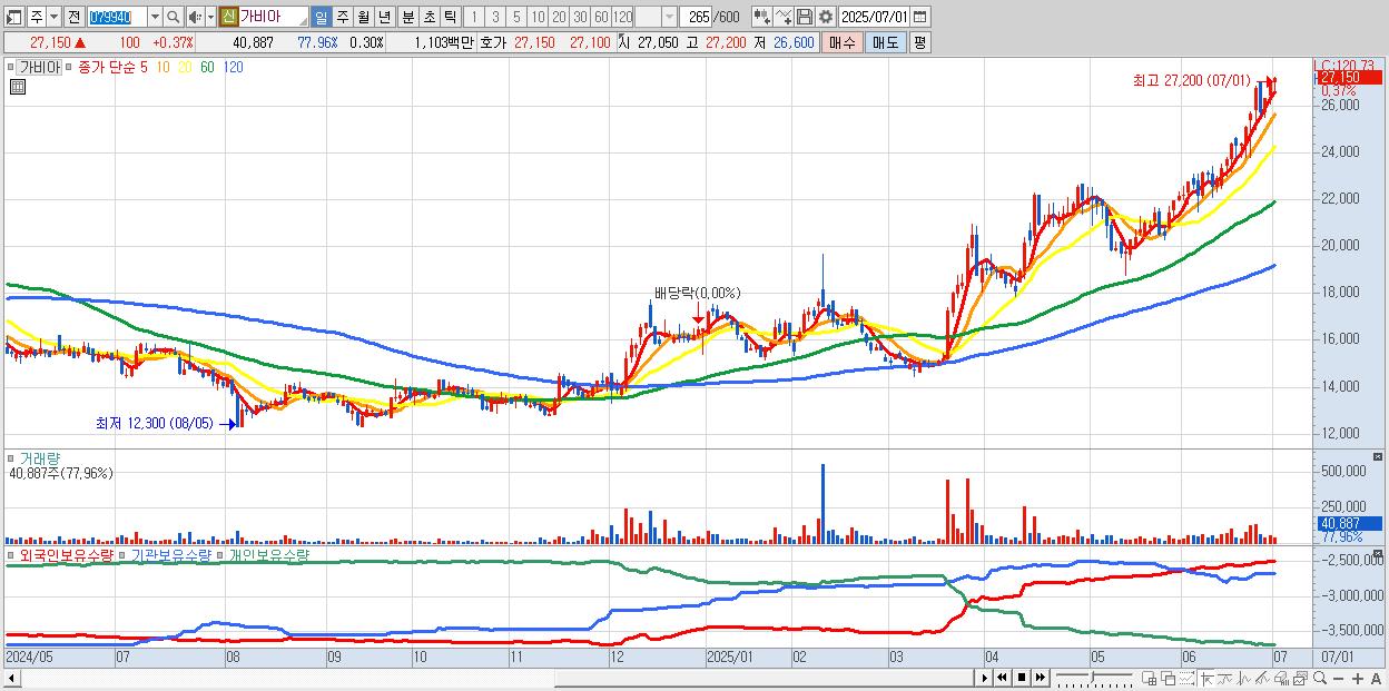 가비아 27,150원 ▲ 0.37% (KOSDAQ, 079940)