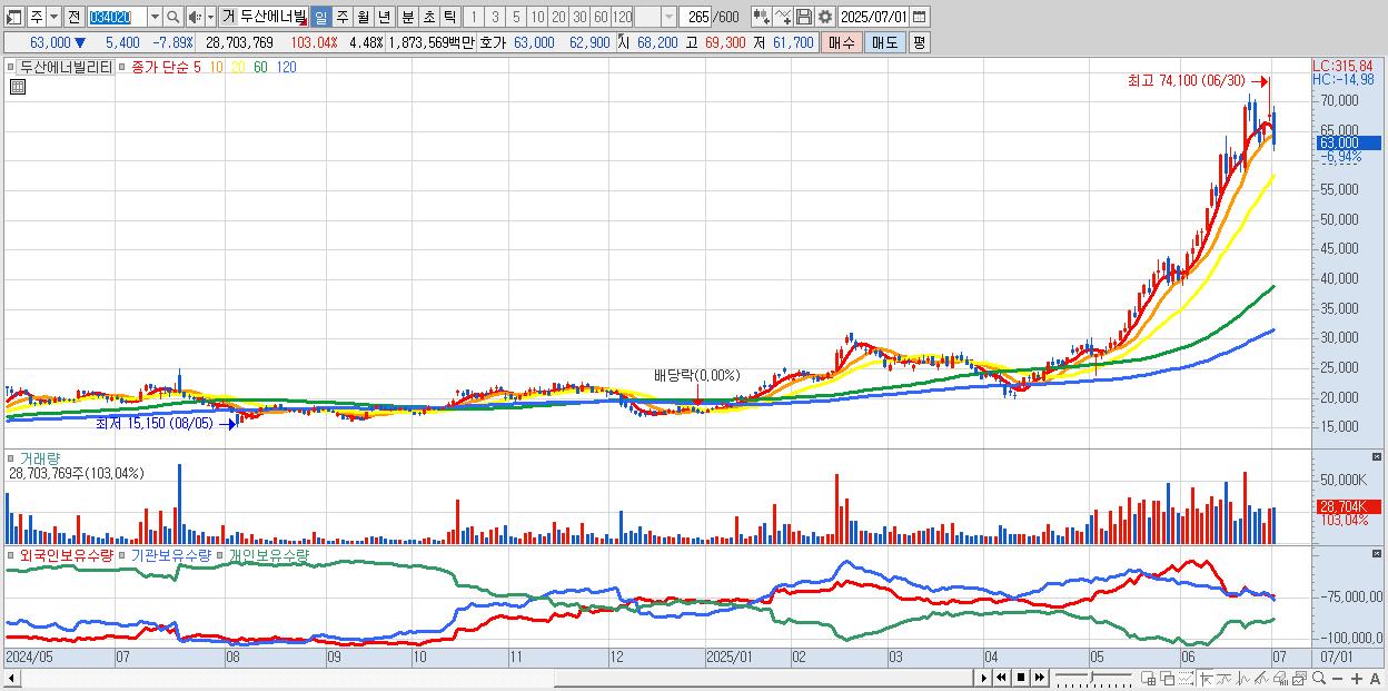 2.두산에너빌리티 62,500원 ▼ -8.63% (KOSPI, 034020)