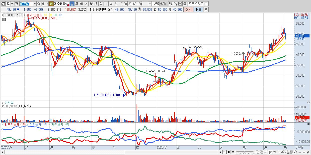 - 이수페타시스 (49,150원 ▼ -3.06% , 시총: 36,081억, 외국인 순매수 거래금:121억)