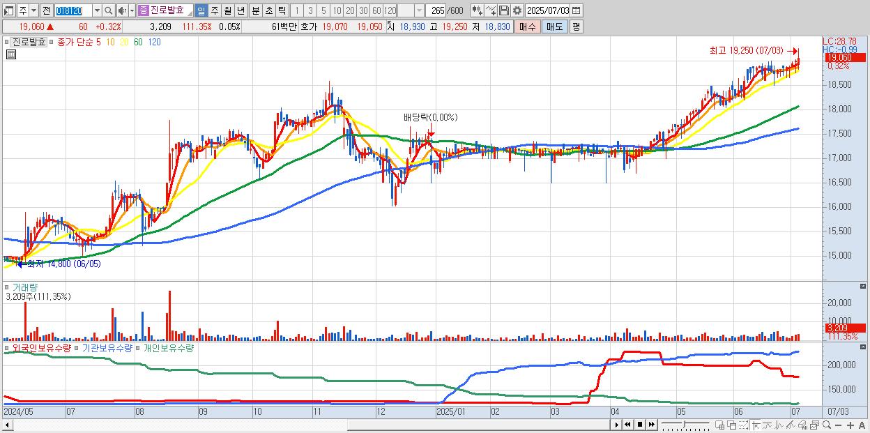 진로발효 19,060원 ▲ 0.32% (KOSDAQ, 018120)