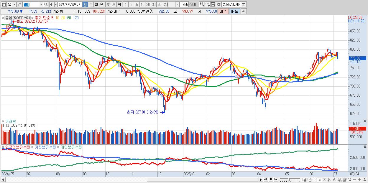 | 07/01 | 783.67 | ▲0.28% | -309억 | -325억 | 550억 | 83억 |