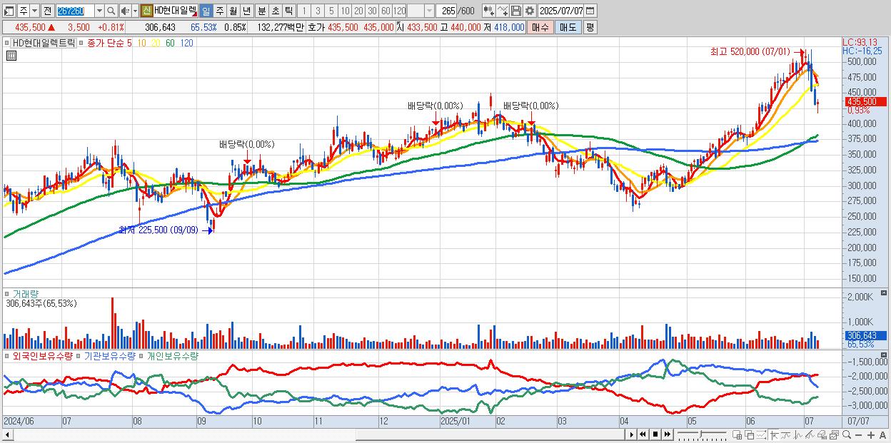 - HD현대일렉트릭 (437,000원 ▲ 1.16% , 시총: 157,526억, 거래량: 239,682, 거래대금:1,034억)