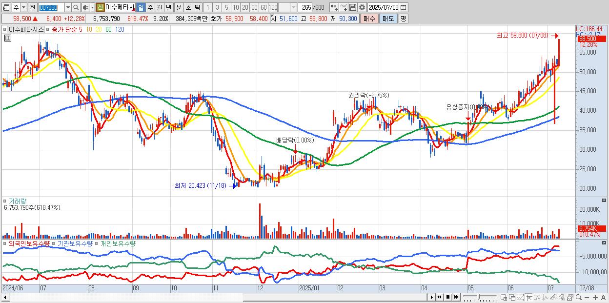 - 이수페타시스 (58,800원 ▲ 12.86% , 시총: 43,165억, 거래량: 3,998,846, 거래대금:2,277억)