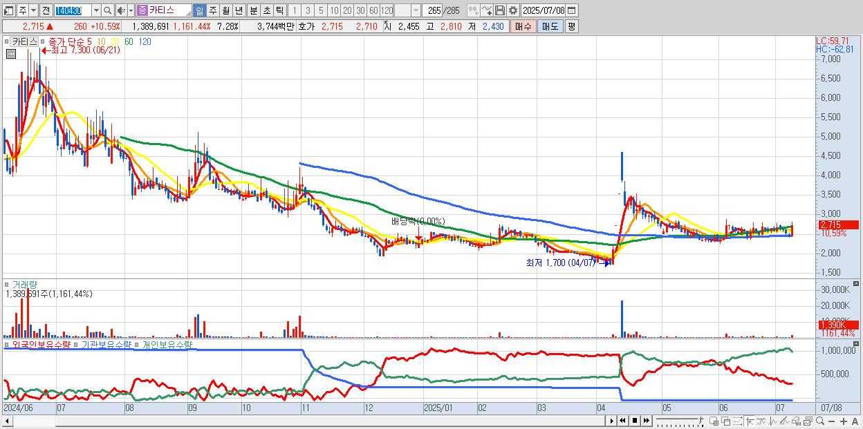 29.카티스 2,715원 ▲ 10.59% (KOSDAQ, 140430)