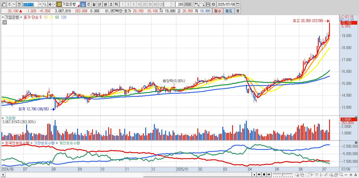 30.기업은행 20,150원 ▲ 5.61% (KOSPI, 024110)