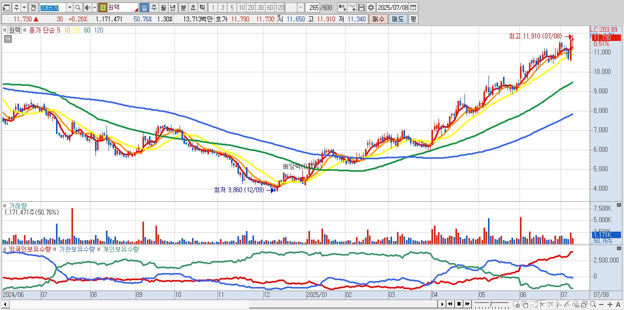 원텍 11,810원 ▲ 0.94% (KOSDAQ, 336570)