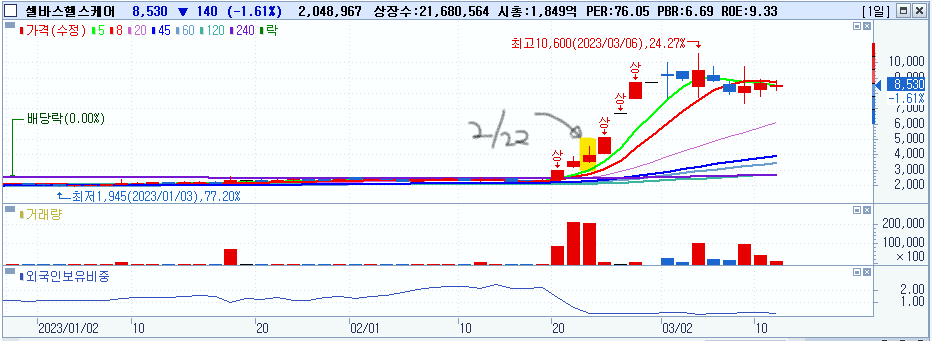 2023-02-22 단기과열종목(3거래일 단일가매매) 지정