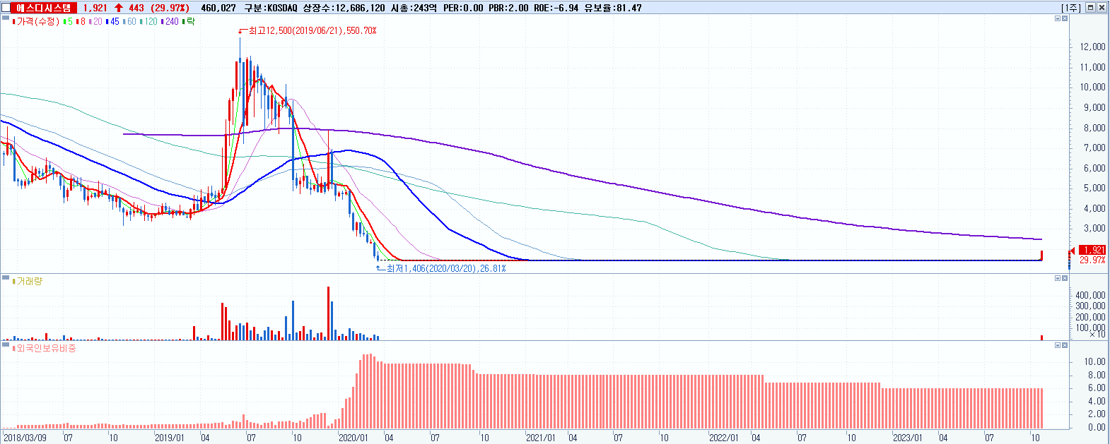 에스디시스템 1,921원 ▲ 29.97% (KOSDAQ, 121890)