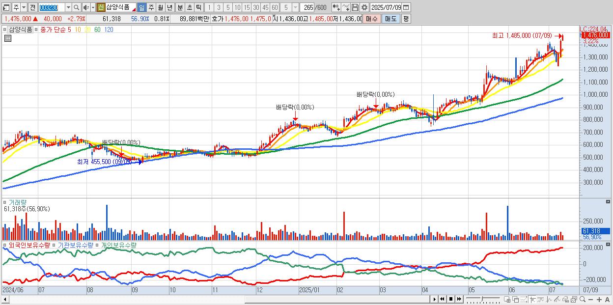 - 삼양식품 (1,479,000원 ▲ 2.99% , 시총: 111,413억, 외국인 순매수 거래금:110억)