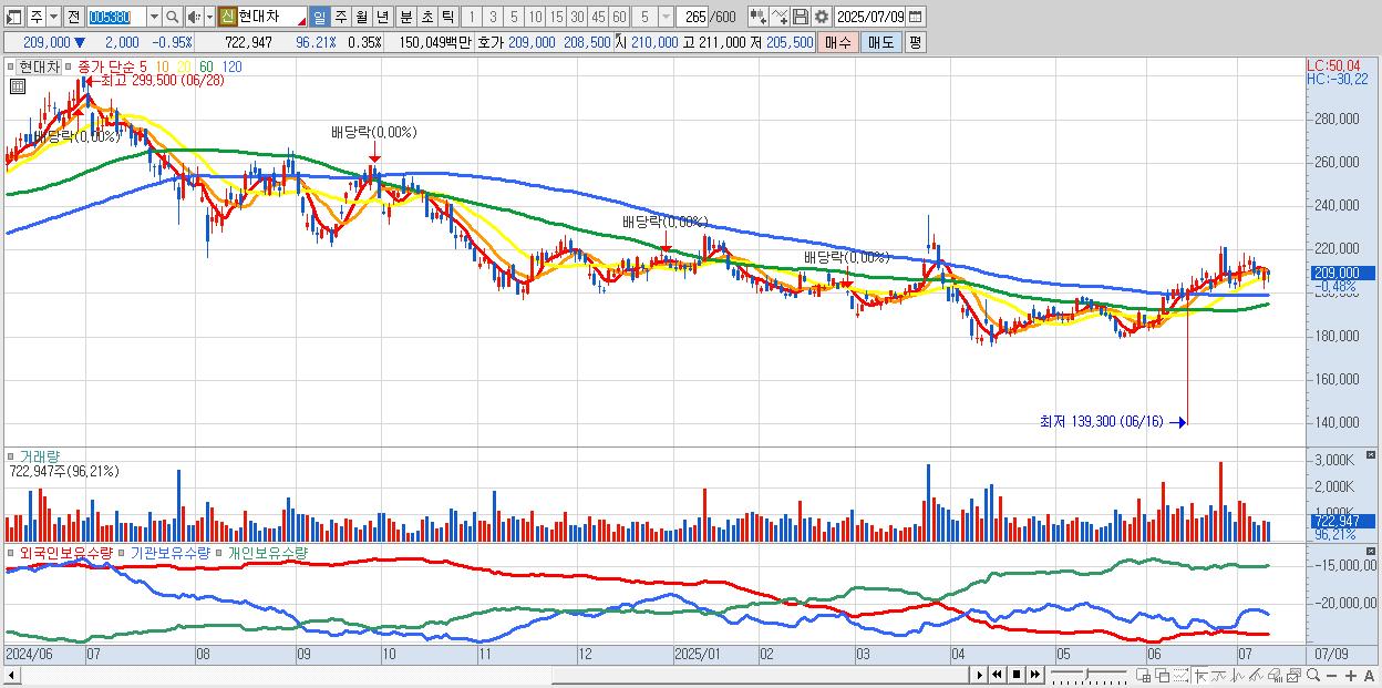 - 현대차 (209,500원 ▼ -0.71% , 시총: 428,968억, 외국인 순매수 거래금:88억)