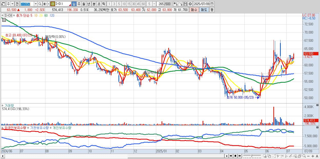 - S-Oil (63,500원 ▲ 2.92% , 시총: 71,490억, 외국인 순매수 거래금:100억)